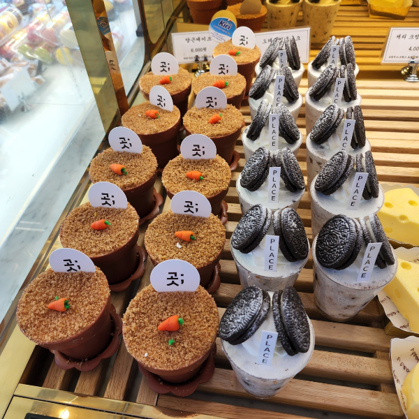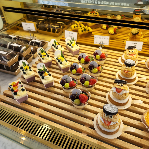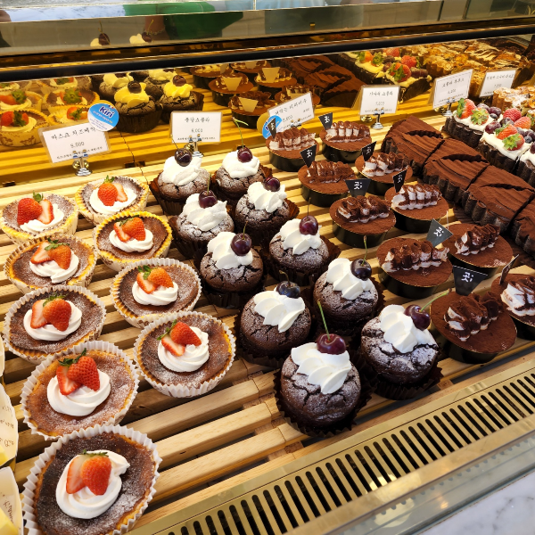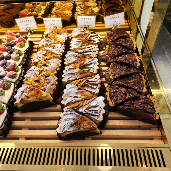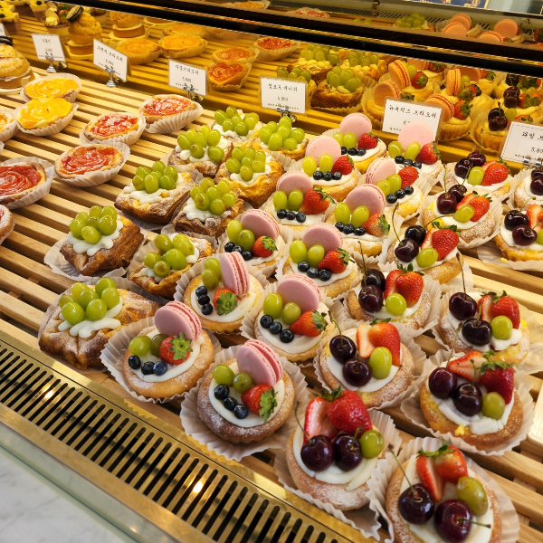 사진으로 봐도 아시겠지만 진짜 아 먹어 보고 싶은 디저트들이 너무 많아요. 그리고 심지어 이뻐서 다 담고 싶은데 쟁반에 빵을 담아 무거워질수록 가격이 생각이 나더라고요.