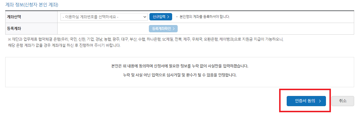 계좌까지 등록이 완료되었으면 인증서 동의를 눌러주면 됩니다.
