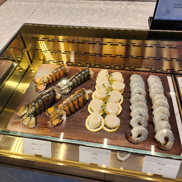 가자마자 랍스터 찜을 바로 줘요. 처음에는 직원분이 가져다 주시고 나중에는 제가 직접 테이블번호 말하면 가져다 주세요. 뷔페를 최근에 안가긴 했는데, 요즘은 비닐잡갑을 안끼고 음식을 받아도 되나봐요? 비닐장갑이 없어서 내가 음식을 가져가도 되는게 맞나 싶을정도로 다른 분들도 그냥 가져가시니깐 저도 그냥 가지고 오긴 했어요. 그래도 음식을 받을때마다 장갑끼고 받는게 너무나 싫었는데, 편하고 좋았습니다.