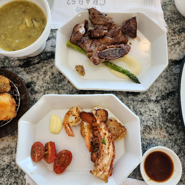 그릴코너에 가면 해산물과 고기 플래터가 있어요. 원하는 것만 받고 싶었는데, 플래터는 고기 또는 해산물 선택해서 받는 거 왜에는 선택해서 받을 수 없다고 하네요. 그래서 그냥 해산물, 고기 각각 1개씩 다 7번 테이블로 달라고 했습니다.