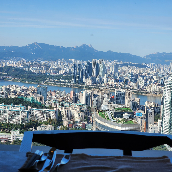 먹고 중간중간 뷰를 볼 때마다 어찌나 좋던지, 느낌은 롯데타워에서 밥 먹는 듯한 기분이었습니다. 그리고 보면 연예인들이 많이 산다는 성스 트리마제가 딱 보여요.