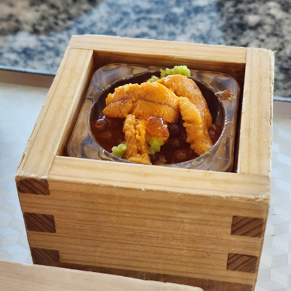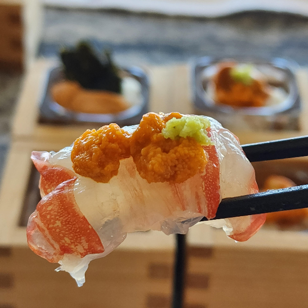 그래서 제가 우니를 스테이크 위에, 단새우 위에, 랍스터 회위에 올려먹어 봤습니다. 제일 맛있는 건 단새우였고, 그 외에는 그냥 그래요. 그냥 단새우랑 많이 먹는 걸 추천해드려요. 그래서 전 밥을 너무 버린다고 생각이 들면 밥 위에 단새우랑 우니 올려서 먹으니깐 오마카세 집 가면 주는 단새우초밥처럼 먹었어요. 먹으러 많이 다녀야지 이런데 와서 열심히 활용해서 먹을 수가 있더라고요.