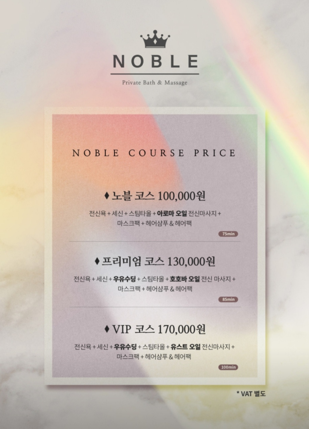 전신욕 > 세신 > 우유수딩 > 스팀타올 > 호호바 오일 전신 마사지 > 마스크팩 > 헤어샴푸&헤어팩