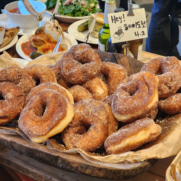 도넛류 종류로는 헤이도넛, 수제팥도넛, 얼그레이도넛, 피스타치오도넛, 우유라즈베리도넛, 바닐라슈도넛이 있습니다.