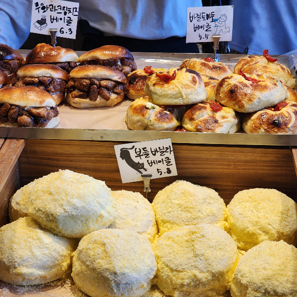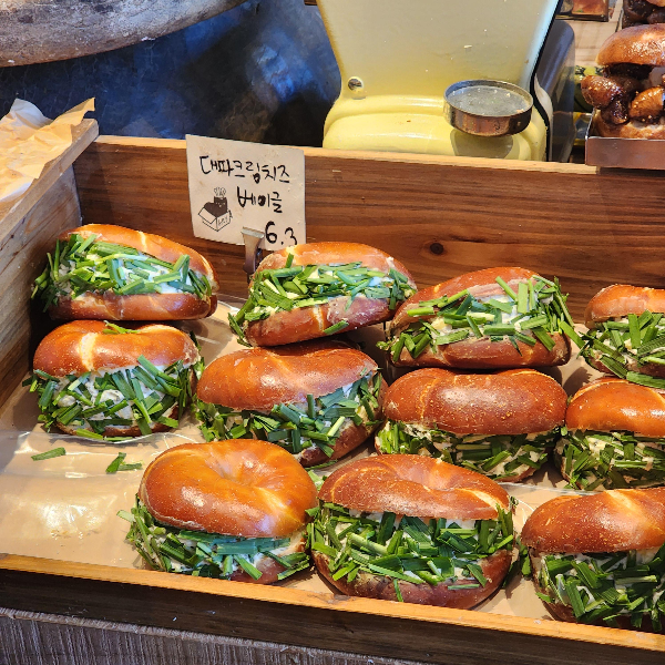 감자치즈베이글, 카야버터베이글, 앙버터베이글, 갈릭퐁당베이글, 바질조카토베이글, 부들바닐라베이글, 무화과크림치즈베이글, 바질토마토베이글, 대파크림치즈베이글, 시금치치즈베이글, 블루베리베이글, 플레인베이글, 에브리띵베이글이 있었습니다.