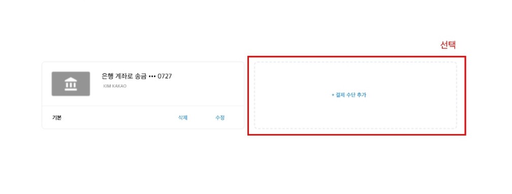 '+결제 수단 추가'를 눌러 새로 등록을 해줘야 합니다.