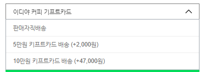 옵션을 보면 판매자직배송이랑 기프트카드배송이 있어요.