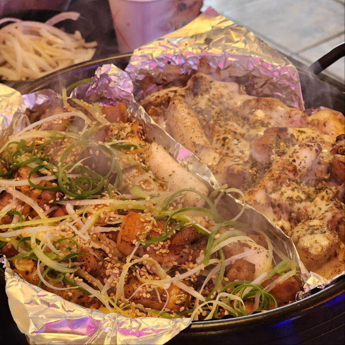 사이드메뉴는 직화치즈 옥수수 김치전, 욱수수 김치전, 쫄면, 불냉면, 비빔냉면, 물냉면, 된장찌개, 짜파게티, 콩나물국이 있습니다.