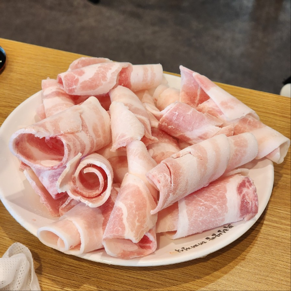 추가로 주문한 1인분만 대패 삼겹인데, 훨씬 양이 많은 것 같아요.