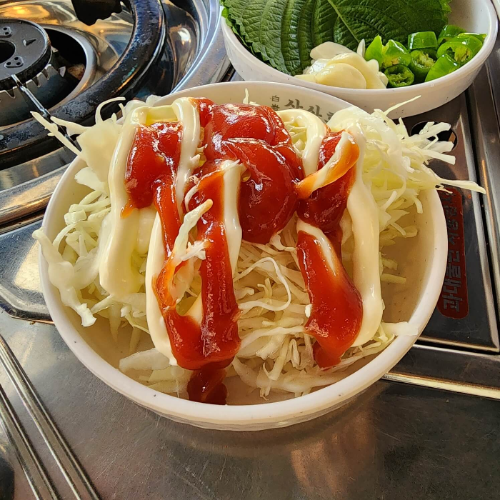 양배추 최고의 소스는 마요네즈랑 케첩 많이 넣고 먹어주는 게 가장 맛있는 것 같아요.