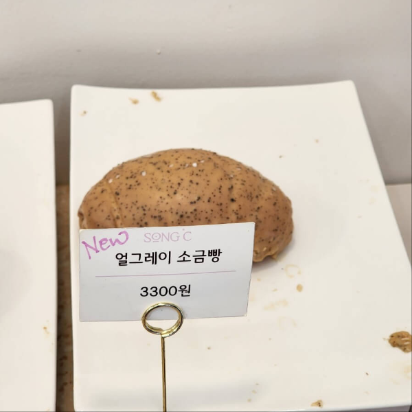 새로 나온 얼그레이 소금빵 맛은 기본 소금빵에 얼그레이크림을 겉에 입혔어요.