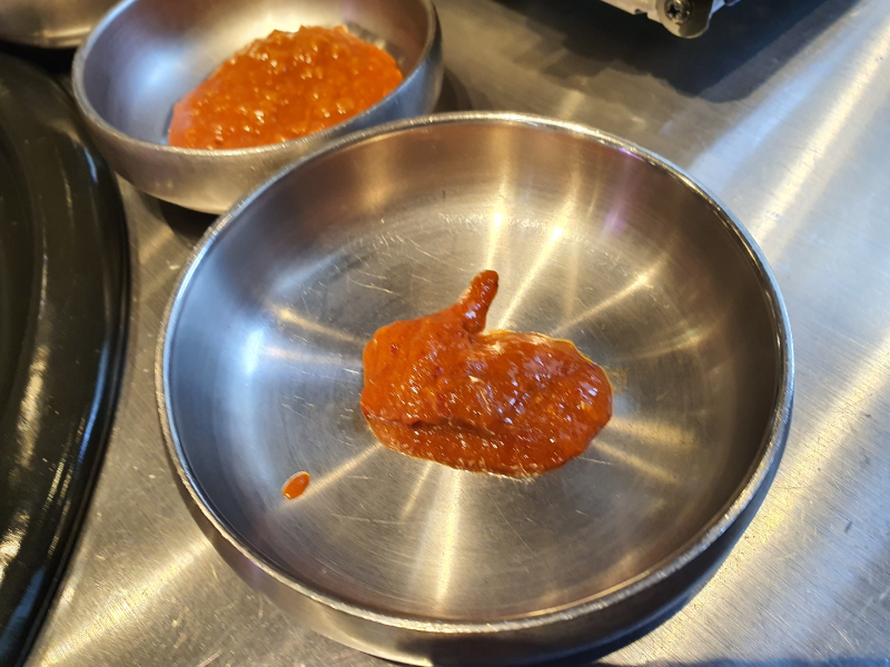 처음에 불판에 올려주시고 한 점씩 먹어보라고 주시는데, 갈치속젓이랑 먹어보라고 추천해주셨는데 먹자마자 '음~!"소리가 바로 나올 정도로 맛있었습니다.