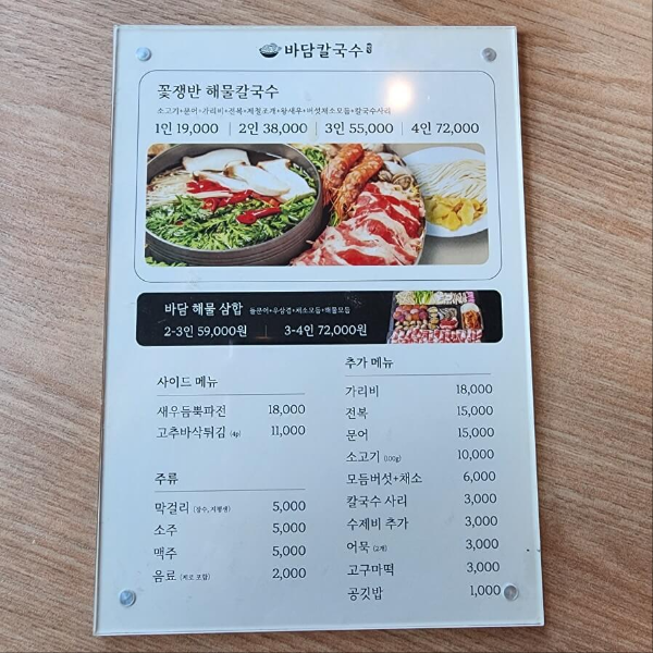 바담칼국수에서 제일 먹고 싶었던 메뉴는 꽃쟁반 해물칼국수였습니다.