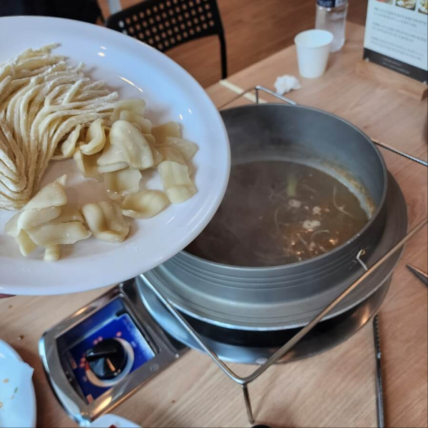 칼국수면이랑 수제비랑 따로 주문하지 않아도 1인분씩 주는 것 같아요.