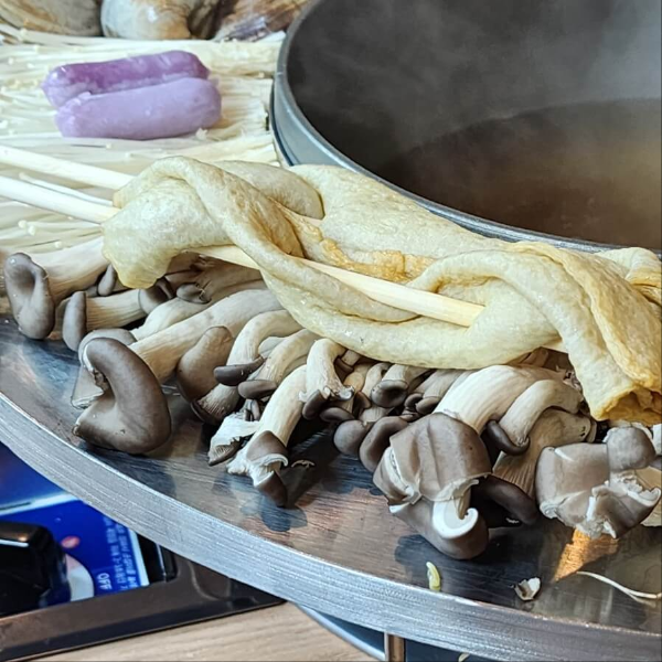 1. 육수가 끓으면 꽃쟁반 위에 있는 소고기와 채소를 넣어줍니다.