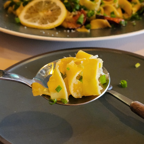 제일 먼저 나온 메뉴는 초리조 딸리 아뗄레입니다. 이름이 어려워서 메뉴판 보고 포스팅하지 않으면 못 말하겠어요. 파스타를 한번 생면으로 먹고 나서부터는 생면 맛을 알게 되었다고 해야 되나? 일반 면보다 꼬들하다고 해야 되나? 그래서 오히려 먹기 더 좋아요. 그래서 파스타집 가면 생면으로 만든 파스타가 있나? 먼저 보게 되요.