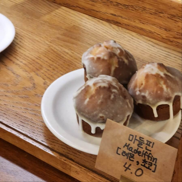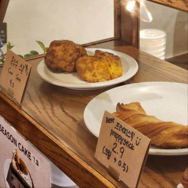 디저트는 옥수수스콘, 프레피스틱, 휘낭시에, 마들린, 바스크치즈케이크있습니다.
