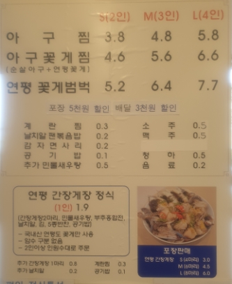 처음에 아구찜을 먹으러 갔는데, 아구꽃게찜도 먹고 싶고, 연평 꽃게 범벅도 먹고 싶었습니다.
