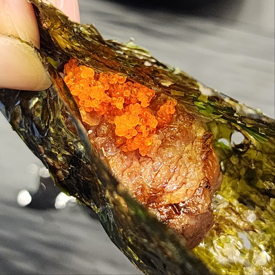 나중에는 명이나물에다가도 먹고, 날치알만 올려서 먹기도 하고, 김에도 싸 먹었어요.