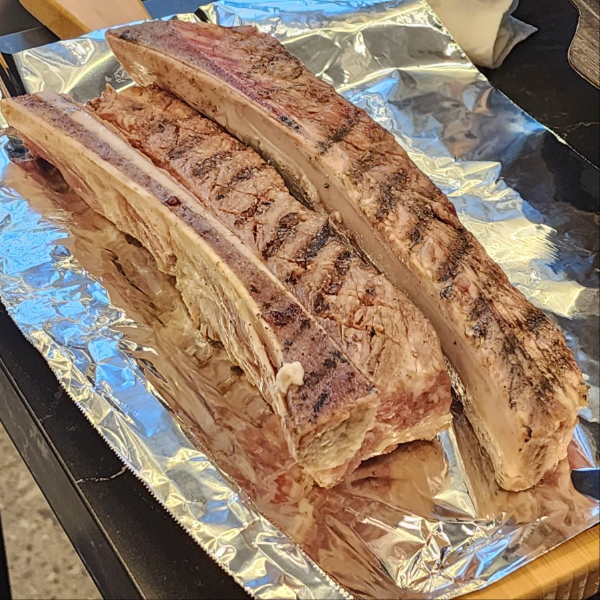초벌 한 우대갈비를 자리에서 꽃갈빗살 부분을 직접 구워줍니다.