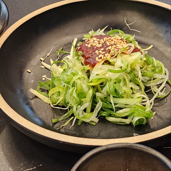 익선 기본반찬으로는 명이나물, 날치알, 파채, 오이피클등이 나돕니다.