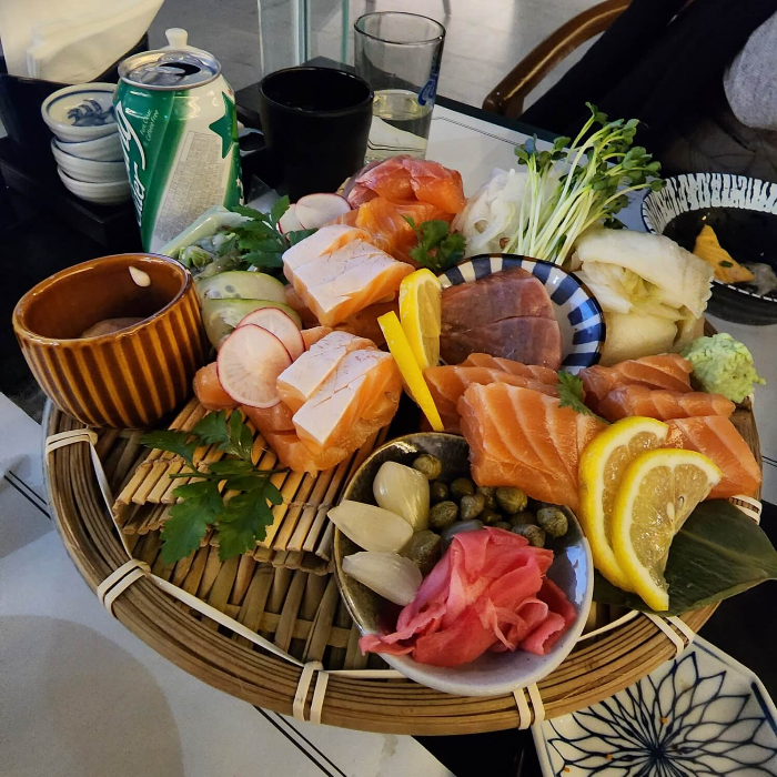 너무 늦게 나와서 화가 나긴 했는데, 나오자마자 양을 보고 놀랐고, 보자마자 연어사시미 퀄리티에 보고 두 번 놀랬어요.