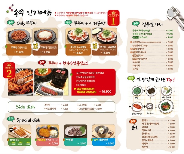 송쭈 인기 메뉴는 쭈꾸미 사리 몽땅이 best고,