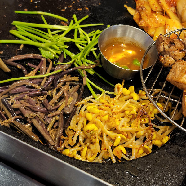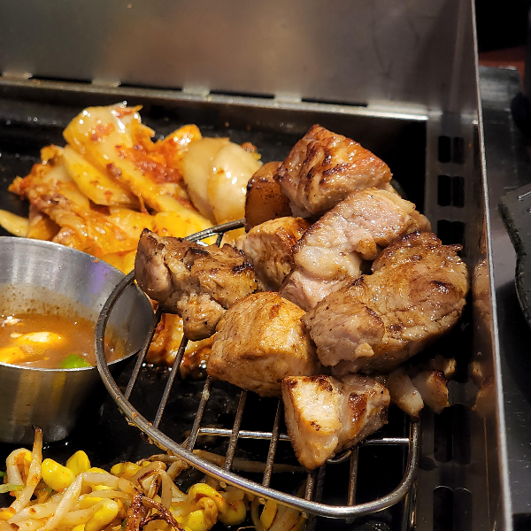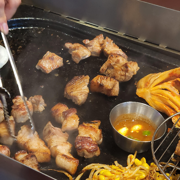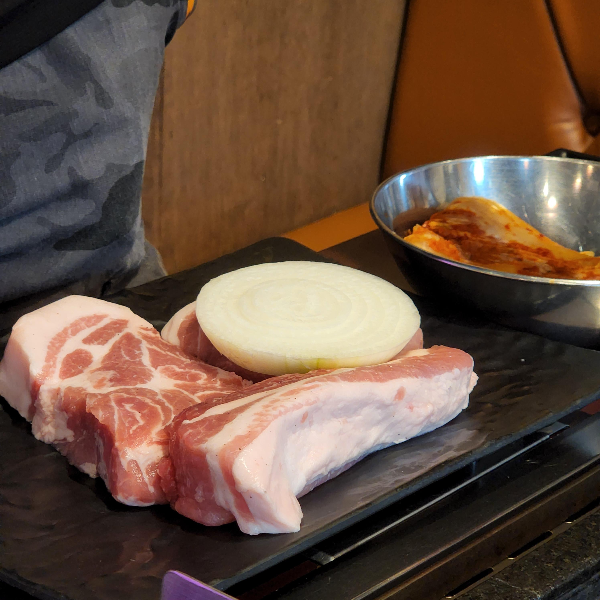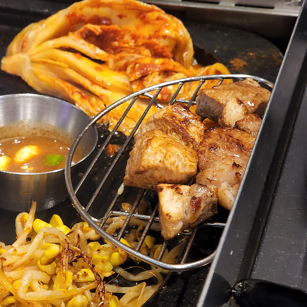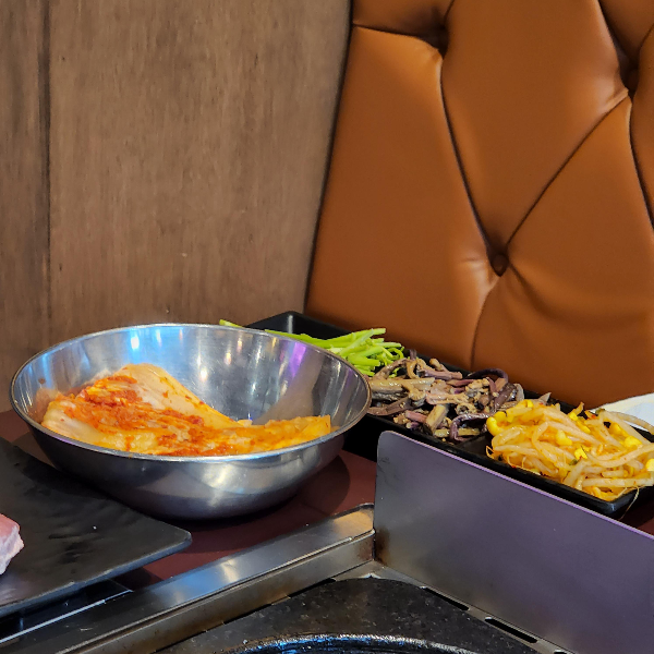 어디 가나 돼지기름에다가 구워먹는면 다 맛있는 것 같아요. 김치는 진짜 필수고 고사리나 미나리, 콩나물도 구워서 같이 먹으면 진짜 맛있어요. 그냥 고기만 먹으면 느끼할 수도 있는데 다 같이 싸서 먹으면 느낌도 사라지는 것 같아요.