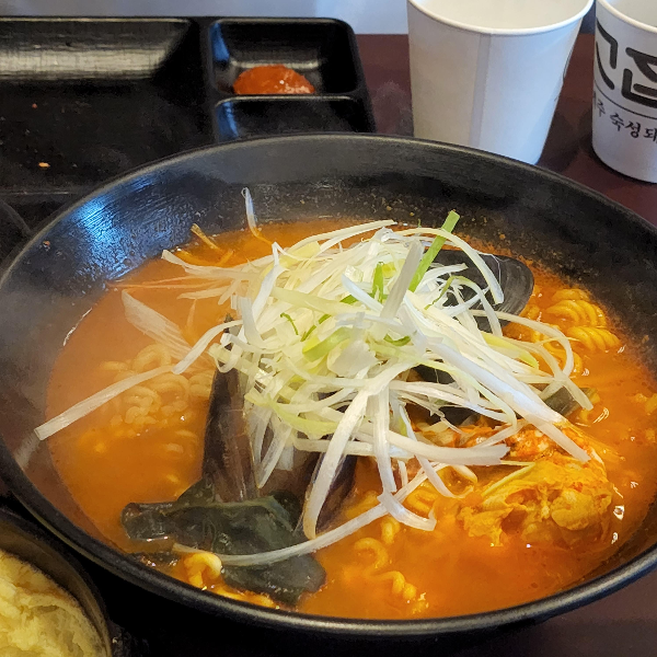 김치가 맛이 괜찮은 것 같아요. 그리고 라면 국물 한번 먹어주면 돼지기름이 내려가는 느낌같아요.
