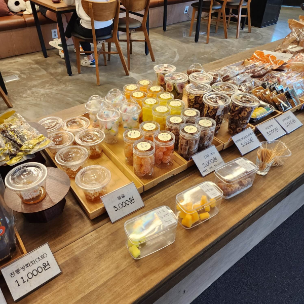 오미자차를 먹고 먹으니깐 맛을 못 느끼긴 했지만, 오미자차를 마신다면 다과를 다 드시고 먹는 걸 추천드려요.