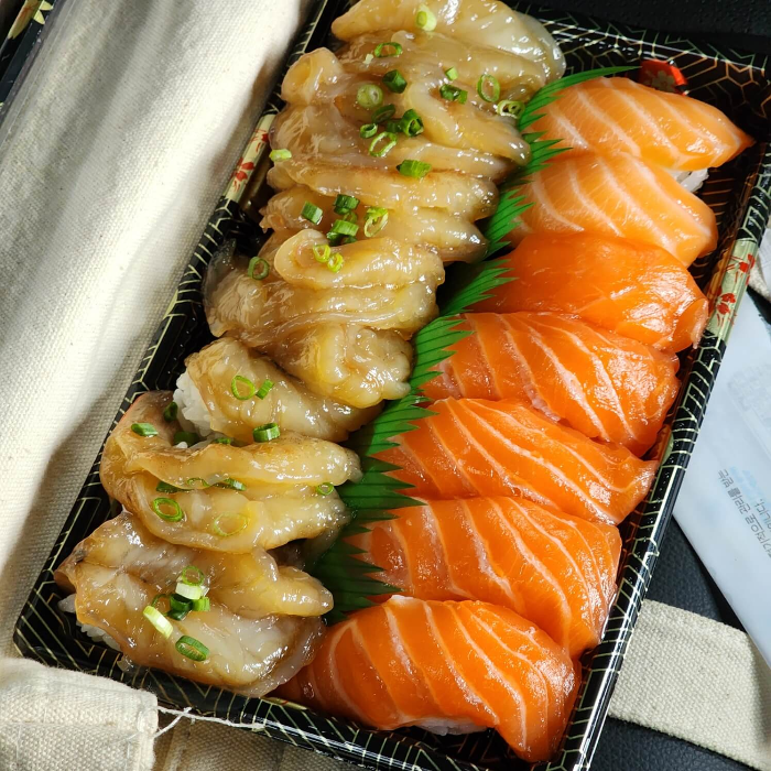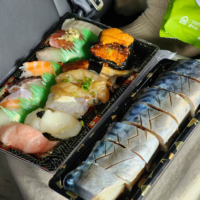저는 첫날에 갔을 때 봉초밥, 오마카세초밥, 연어, 간장새우초밥을 구매했어요.