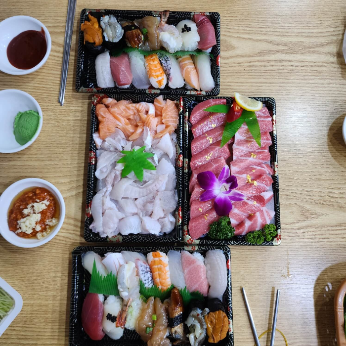 사시미 종류로는 활광어회, 생연어회, 대방어회, 농어회등 여러 종류가 있습니다.