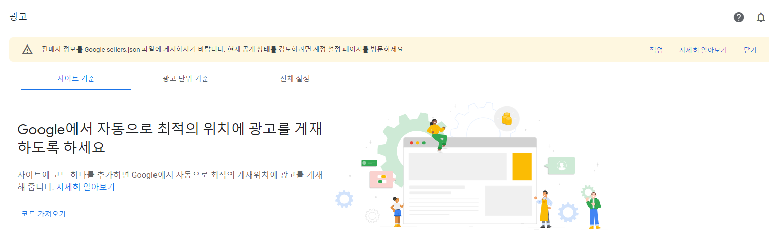 ads.txt 해결 했더니 다른 문제점이 또 보이더라고요. 아래 문구처럼 Google sellers.json 해결하라는 안내메세지가 나와요. 그래도 진짜 쉽게 해결할 수 있어요. 파일 업로드할 필요도 없고, 코드도 볼 필요도 없어요. 마우스 3번만 눌러주시면 끝나요.