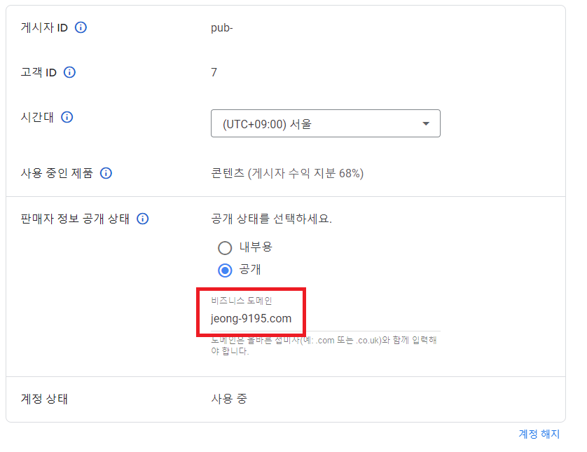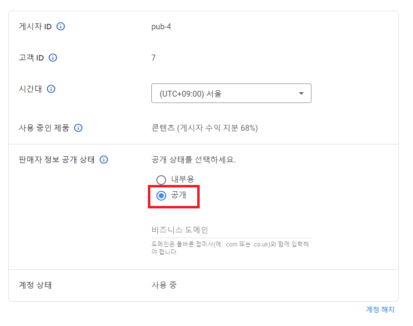 판매자 정보를 Google sellers.json 파일에 게시하시기 바랍니다. 현재 공개 상태를 검토하려면 계정 설정 페이지를 방문하세요