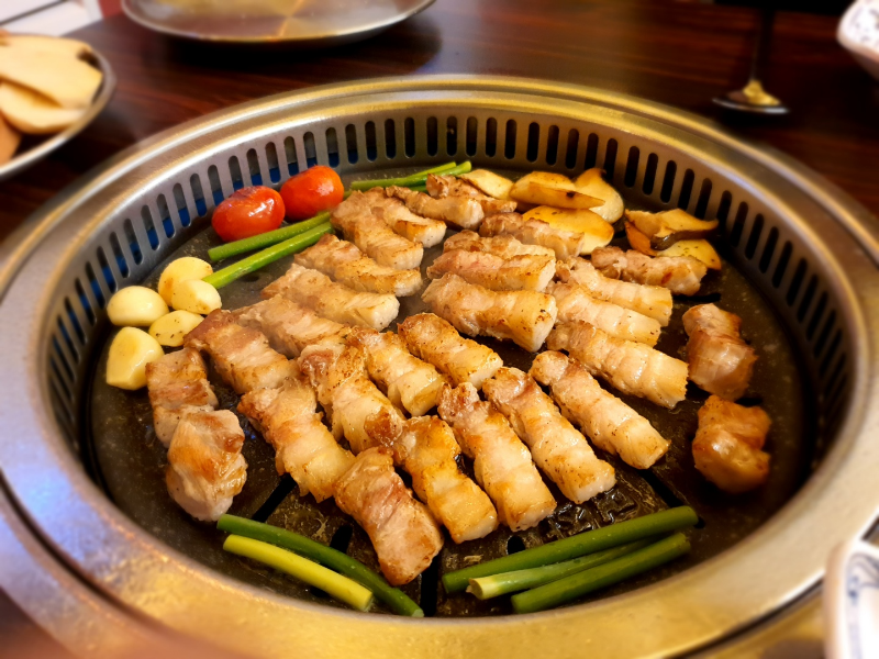 연기가 조금 아쉬운 사진이지만 그래도 정말 이쁘게 찍은 삼겹살 사진입니다.