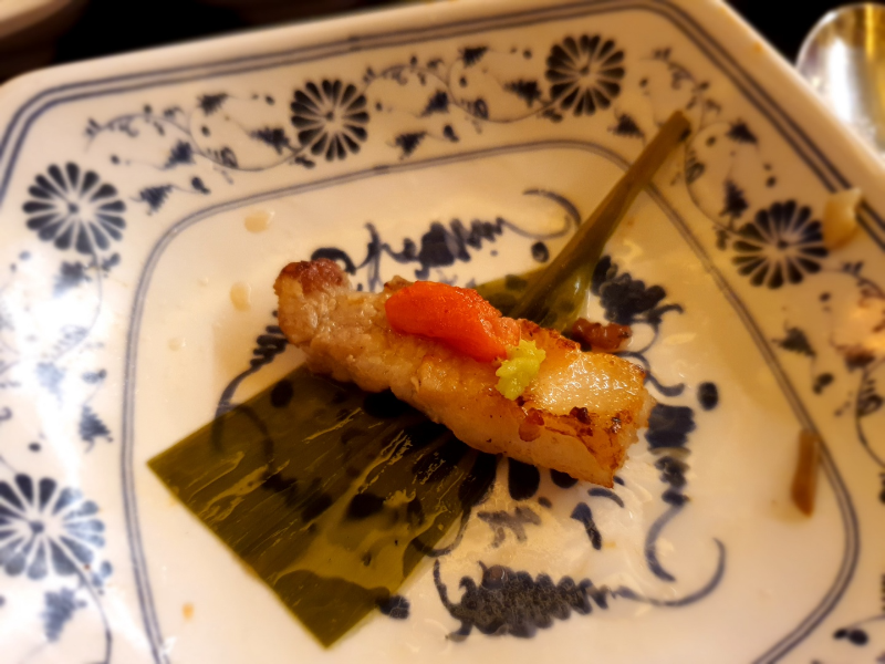 그래서 명이나물 위에 삼겹살 그리고 생와사비 올려서 먹었는데 진짜 너무 맛있었어요.