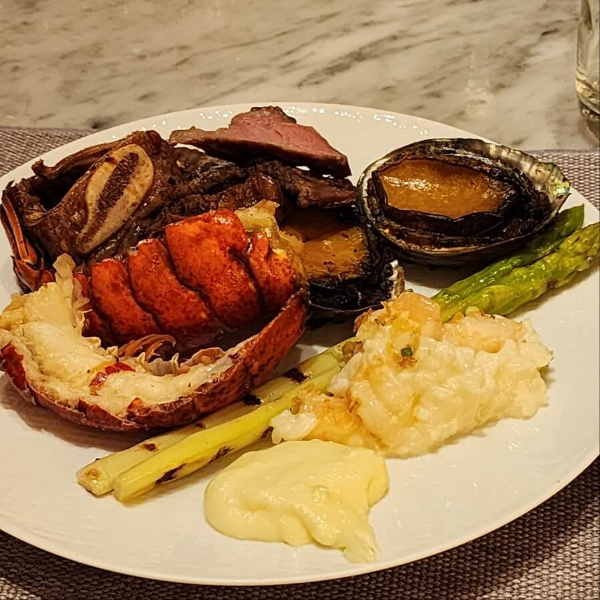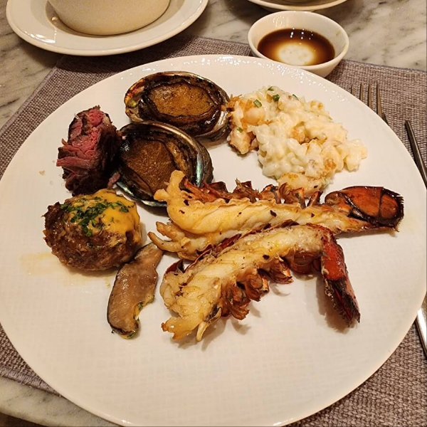 처음에는 그릴스테이션에서 소고기랑, 랍스터, 전복구이 그리고 리조또 먹었습니다.