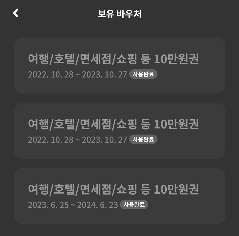 그동안 포인트 10만원씩 모을 때마다 그린 바우처 10만원권으로 교환했어요.
