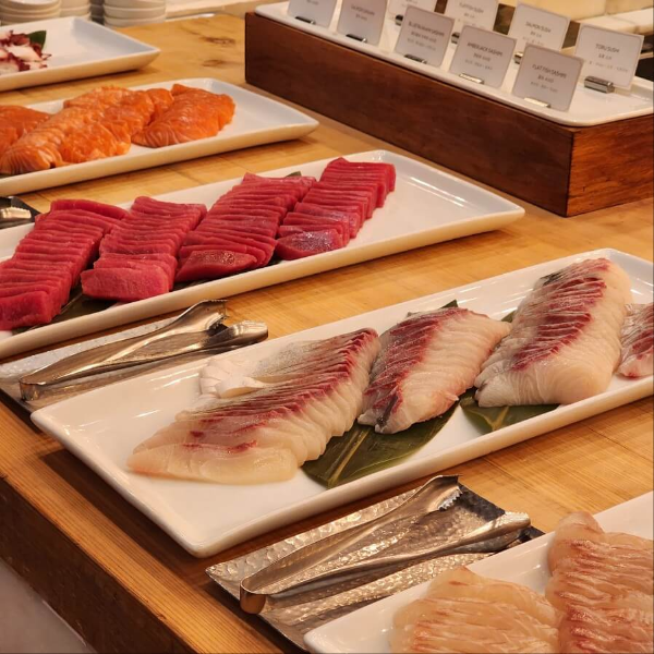 지중해 스테이션에는 초밥, 사시미, 가리비, 대게, 육회 등 여러 가지가 있었습니다.