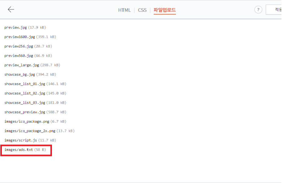 업로드가 정말 순식간에 돼서 차이점이 있나?라고 생각이 드실 거예요. 기존에 있던 거랑 비교를 했을 시 'images/ads.txt'라는 파일이 새로 생성이 된 게 보이실 거예요.